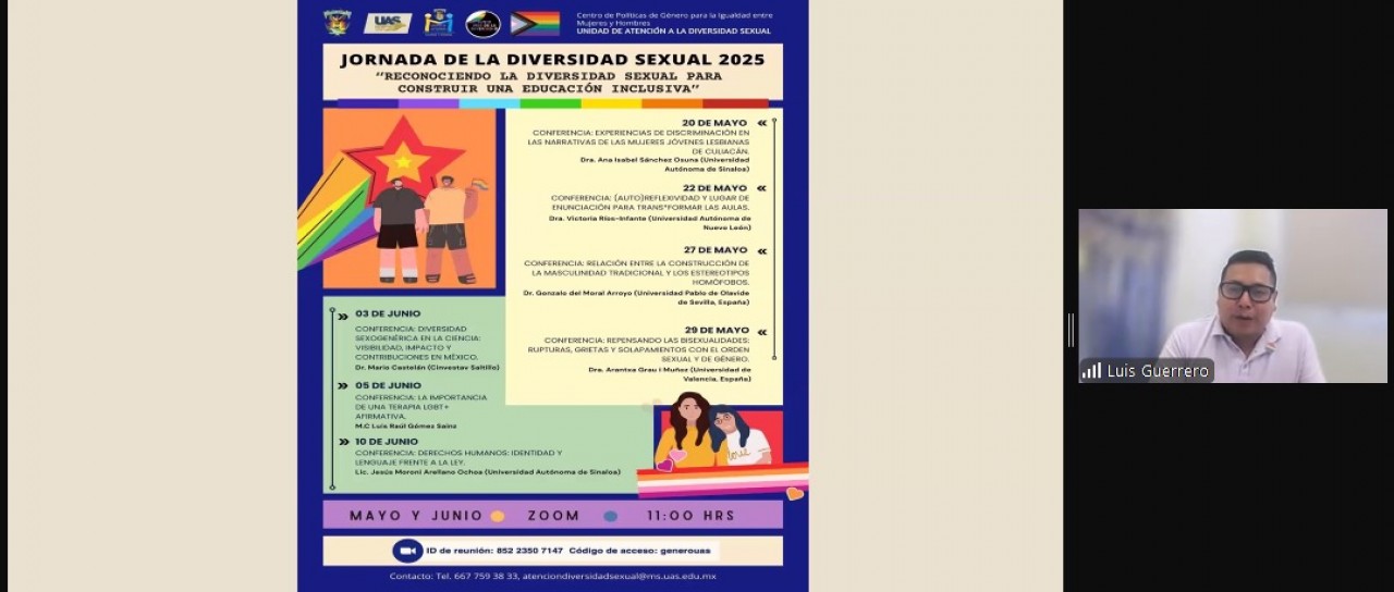 Se llevó a cabo la última sesión de la Jornada de la Diversidad Sexual 2025 “Reconociendo la diversidad sexual para construir una educación inclusiva” que el Centro de Políticas de Género para la Igualdad entre Mujeres y Hombres (CPGIMH) a través de la Unidad de Atención a la Diversidad Sexual puso en marcha el 20 de mayo pasado en el marco del Mes de la Diversidad.