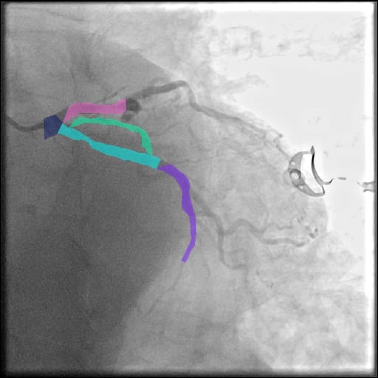 La investigación utilizó un conjunto de datos denominado ARCADE, generado en 2022 para un concurso internacional orientado al diagnóstico de problemas del corazón. A partir de esta base, se entrenaron modelos de aprendizaje profundo mediante la técnica YOLO (You Only Look Once), lo cual permitió segmentar imágenes en escala de grises para detectar con precisión tanto los vasos sanguíneos como las zonas críticas de estenosis.