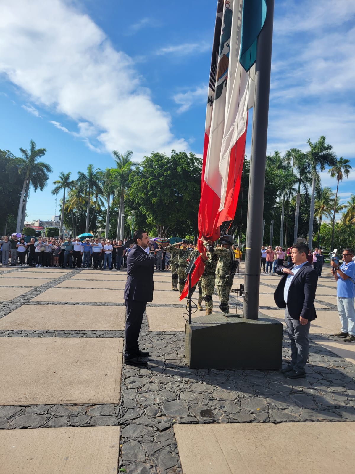 Después del izamiento del lábaro patrio, Bello Esquivel, con la representación del Gobernador Rubén Rocha Moya y acompañado de las autoridades civiles y militares escucharon una remembranza del Benemérito de las Américas, en donde se destacó la máxima que acuñó y que hoy en día se mantiene vigente: “Entre los individuos como entre las naciones, el respeto al derecho ajeno es la paz”.