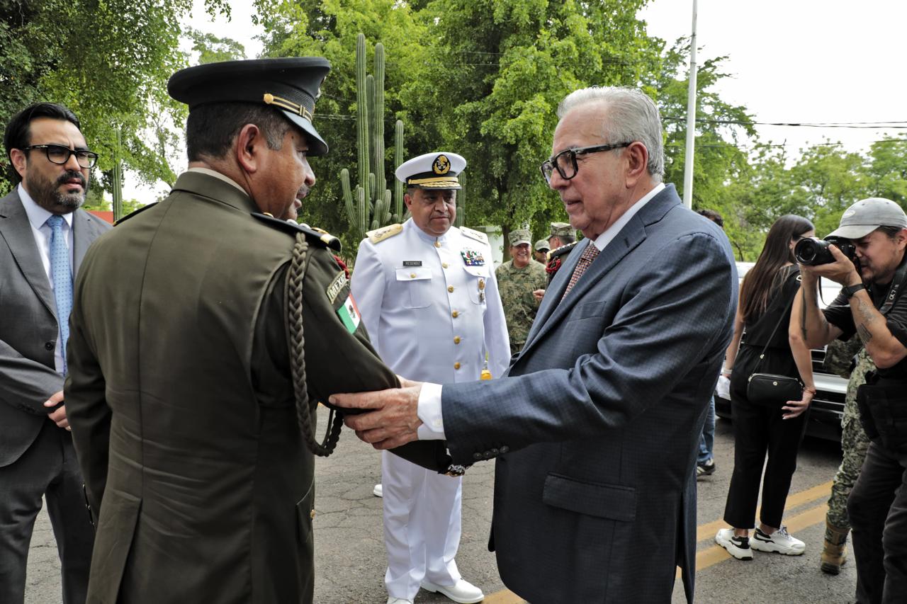 El gobernador Rubén Rocha Moya asistió, como invitado de honor, a la Ceremonia de Toma de Protesta, Posesión al Cargo y Protesta de Bandera del General de Brigada Santos Gerardo Soto, como Comandante de la Novena Zona Militar, en sustitución del General Porfirio Fuentes Vélez.