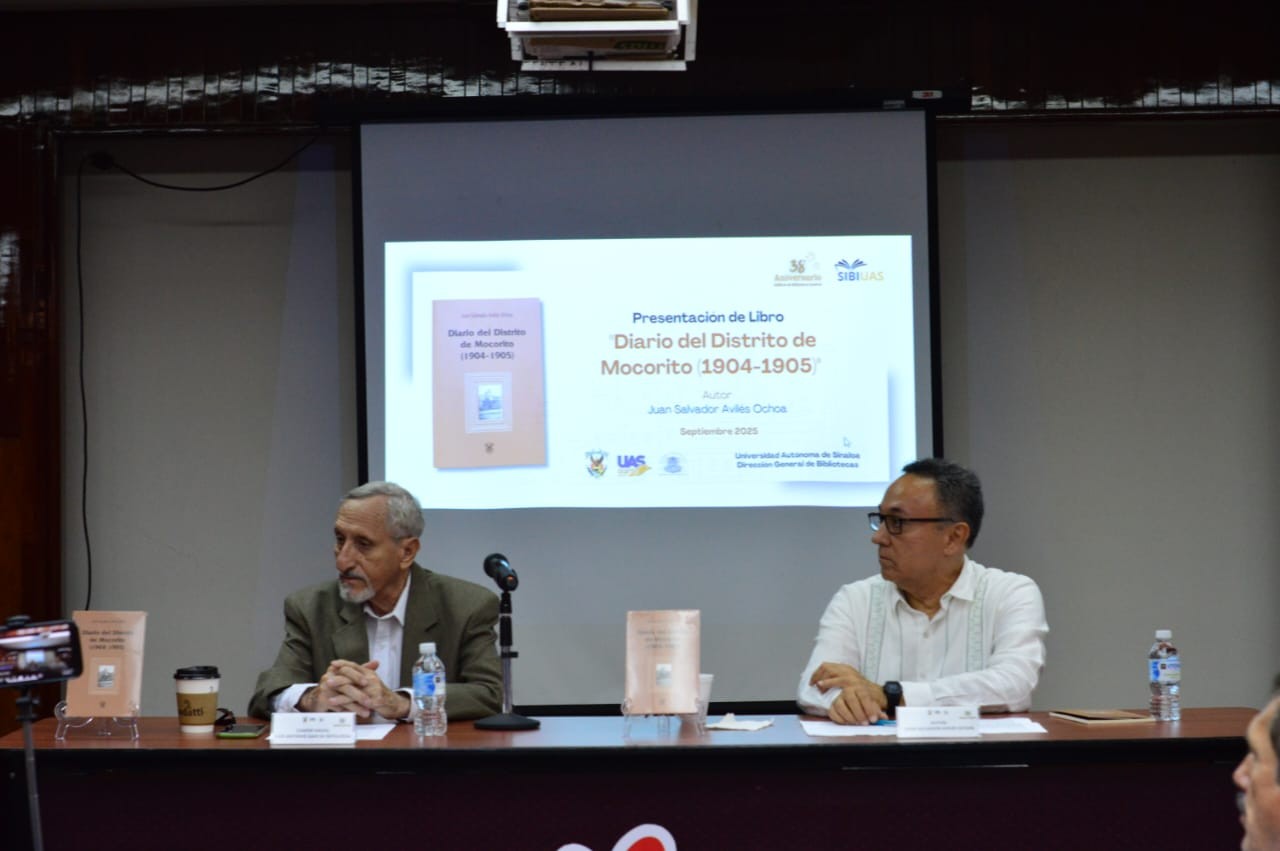 La Dirección General de Bibliotecas de la Universidad Autónoma de Sinaloa (UAS), en colaboración con el destacado cronista, político y escritor sinaloense Juan Salvador Avilés Ochoa, realizó la presentación del libro “Diario del Distrito de Mocorito (1904-1905), en el marco del 38 aniversario de la fundación de la emblemática Biblioteca Central “Eustaquio Buelna Pérez”.